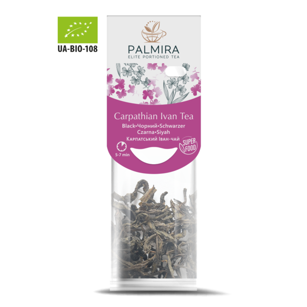 Настоящий карпатский Иван-чай. Черный, ферментированный, узколистный. Изготовлен в Украине по традиционной славянской рецептуре из листьев, собранных высоко в горах в отдаленных уголках Украинских Карпат. Обладает широким спектром целебных свойств киприйного чая с легким пряно-травяным ароматом и тонким вкусом с медовыми оттенками. Не содержит кофеина, поэтому его можно пить в любое время суток и взрослым и детям. Саше - 2,2 грамма.