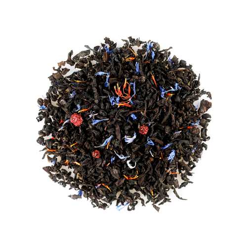 Состав: черный чай, шафран, василек, сублимированная смородина, малина, натуральный ароматизатор клубника, смородина, лесная ягода, кусочки манго.