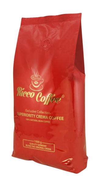 Ricco Coffee Superiority Crema Coffee крепкий кофе эспрессо, американо. Этот кофе имеет оригинальный вкус и аромат (шоколад, карамельный попкорн) с молоком - латте, капучино.