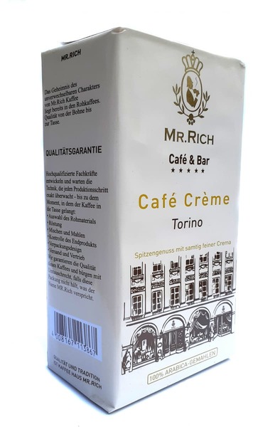 Кофе Mr.Rich "Cafe Creme Torino"- обладает интенсивным ароматом, мягким, сбалансированным вкусом с плотной кремой и пряными нотками в послевкусии.